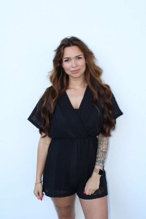 Bereik een moeiteloze stijl met onze romper met V-hals en elastiek. een veelzijdig en comfortabel stuk voor elke gelegenheid. Het ontwerp met V-hals voegt een vleugje verfijning toe en de taille met elastiek biedt een aanpasbare pasvorm die je casual look met gemak naar een hoger niveau tilt.