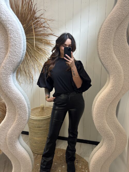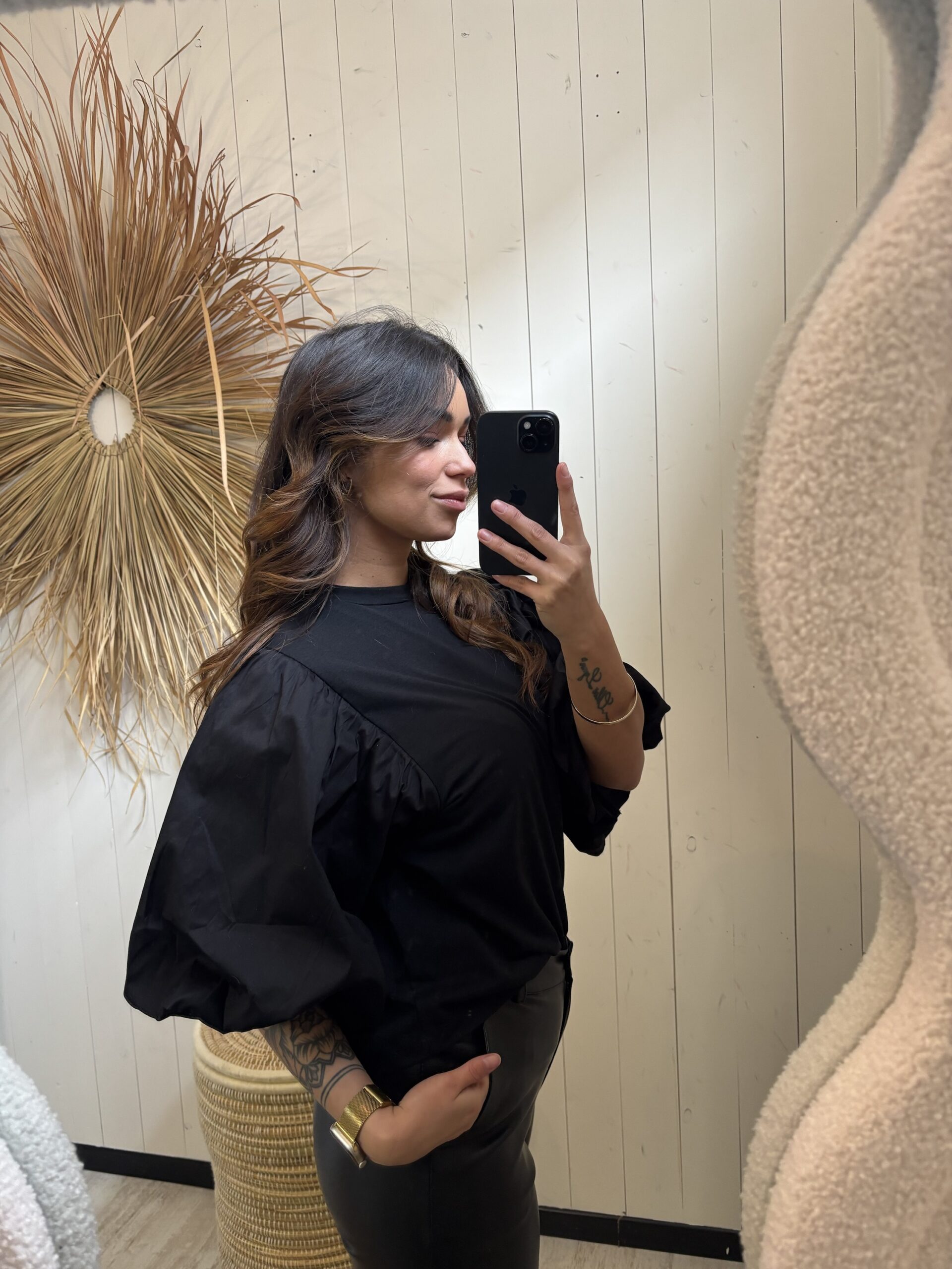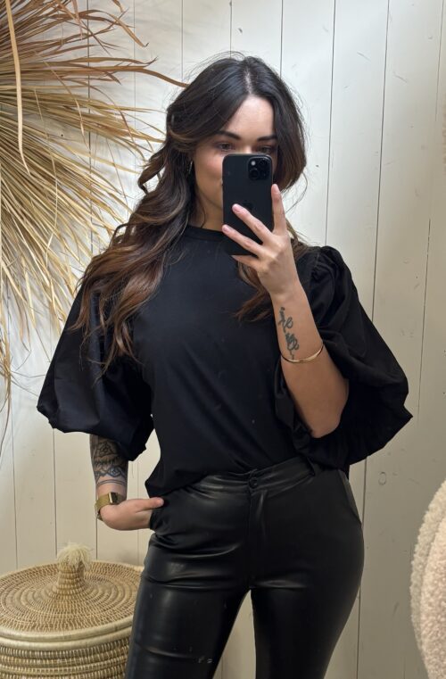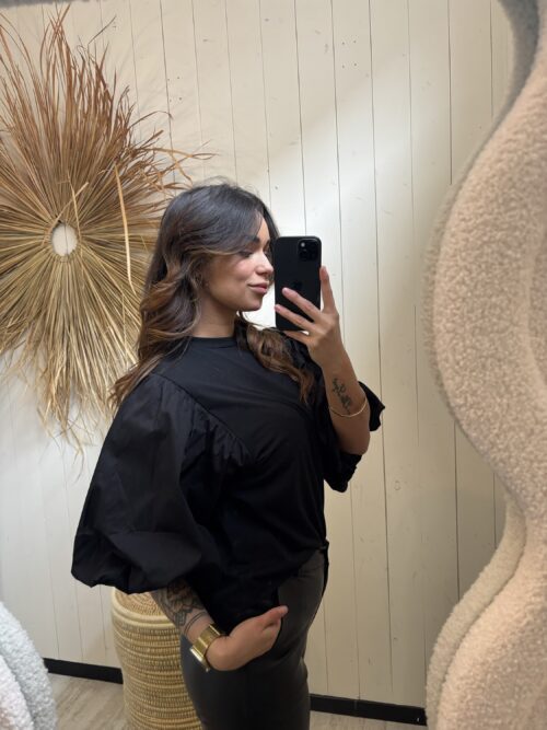 Upgrade je garderobe met dit prachtige shirt met pofmouwen! De luchtige stof en modieuze pasvorm maken het ideaal voor elke gelegenheid – van casual chic tot een stijlvolle avondlook.